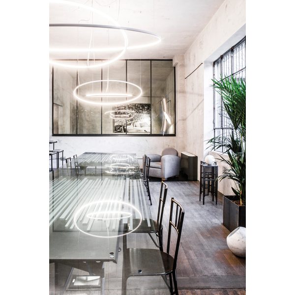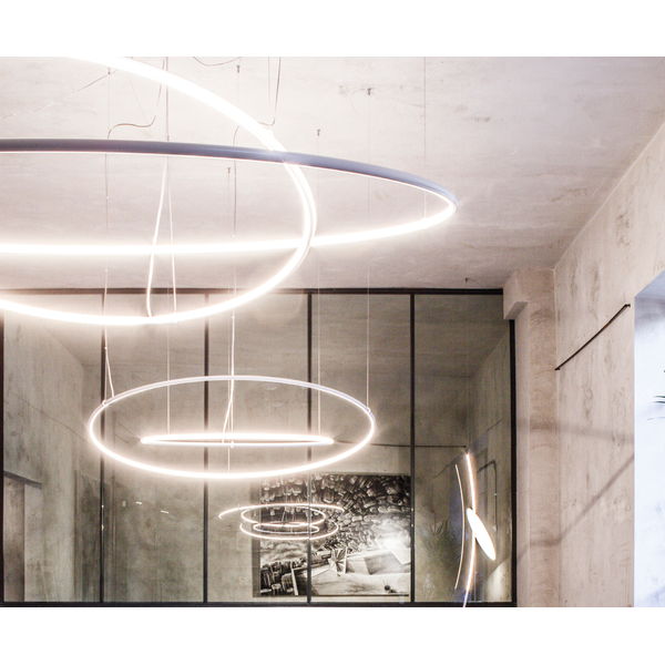 The Lancia Tonda suspension system is a series of diffused curved LED extrusions. The structure is composed of an extruded aluminium profile with an opal polycarbonate diffuser. Available in a range of diameters and finishes to suit the design aesthetic required. The Lanica family is noinated as CRI90 across the entire range.